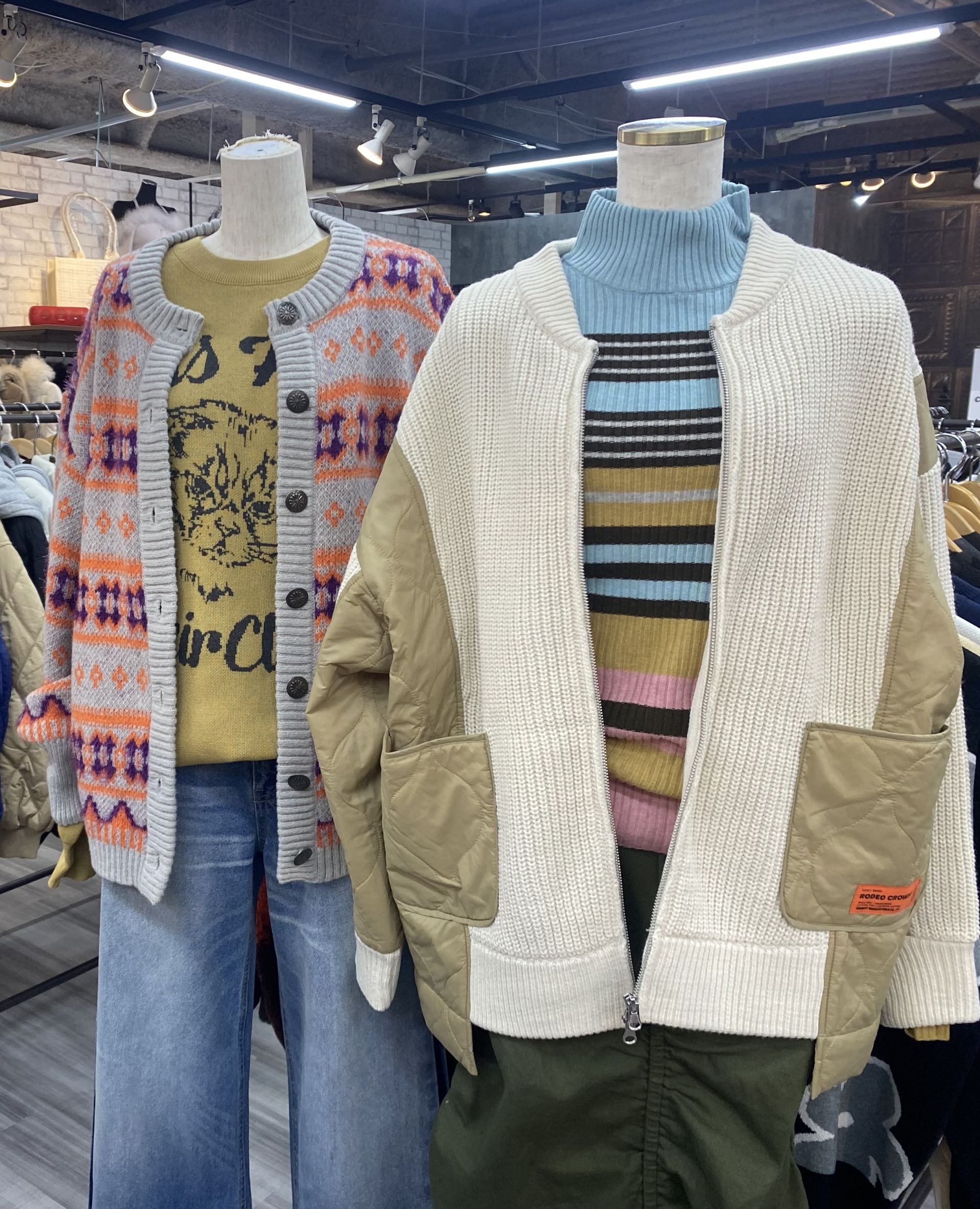 ふわっとしたモヘア風のカーディガンや、ドライバーズニットに目移りして、つい手に取りそうになる。