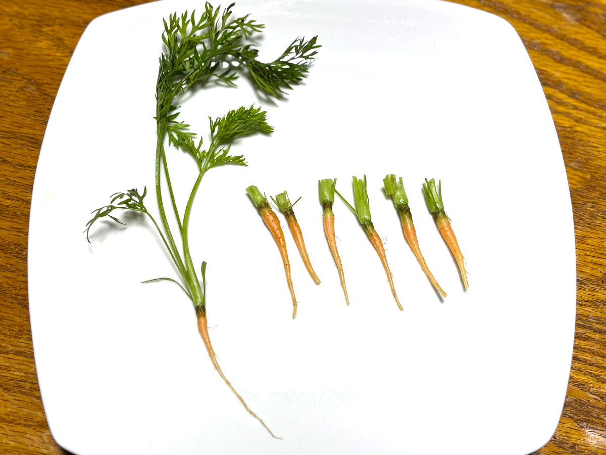 にんじんの葉が少しずつ大きくなり、間引きをした葉っぱが実家から届きました。