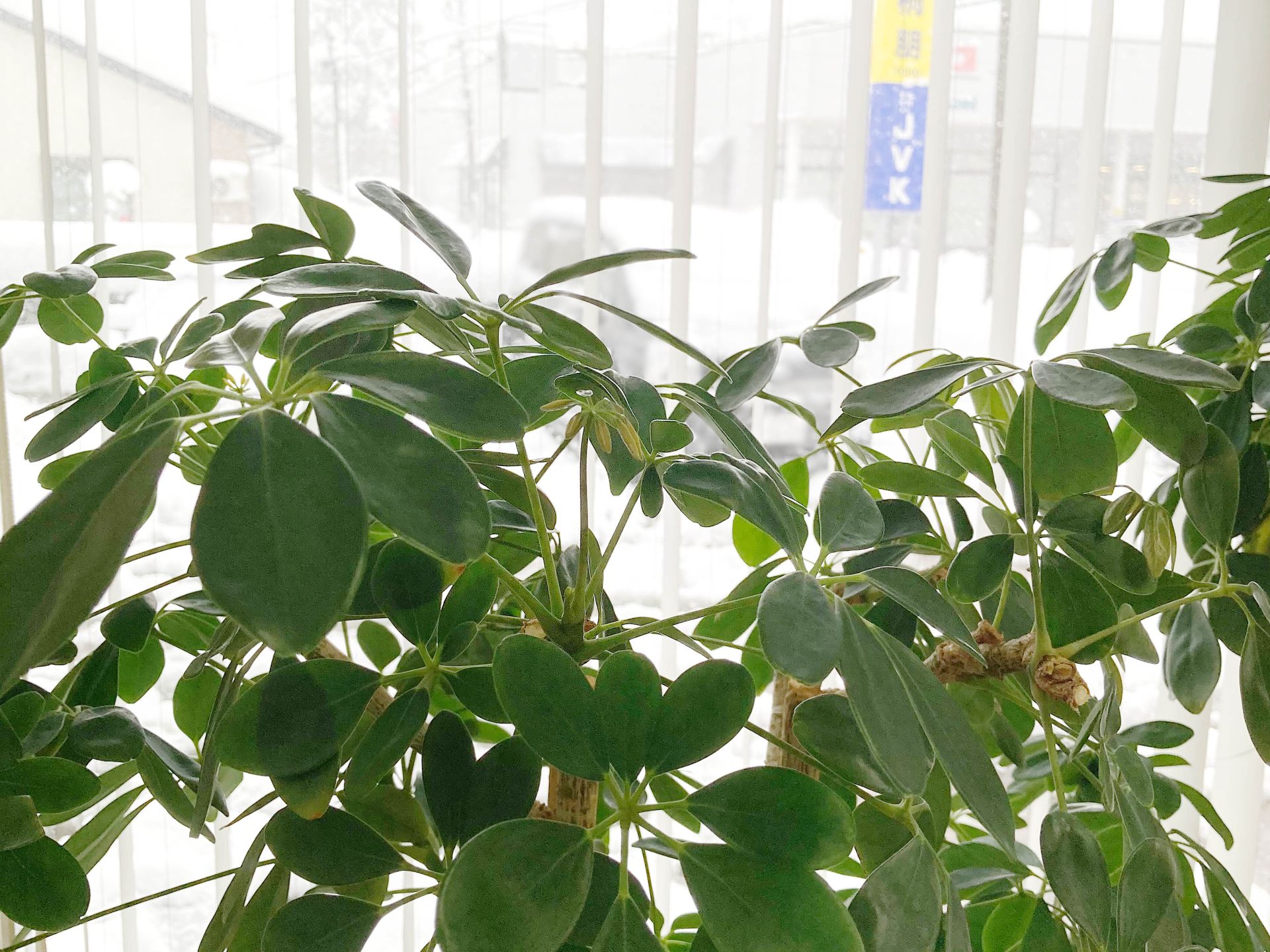 外のどこを見ても雪でいっぱい!冬の上越らしい景色になりました。日中も気温が上がらなくて寒いですね……。社内のカポック「ボブ」と「よし子さん」もさぞ寒くて辛いだろうと思いきや、こんな時期でもなんと新芽を出しています。ちょこんと出た小さな芽がとっても可愛いです。寒いけどお水飲む?少しでいいかな?長年私たちを見守ってくれている大先輩たち、これからもマイペースに元気でいてね!