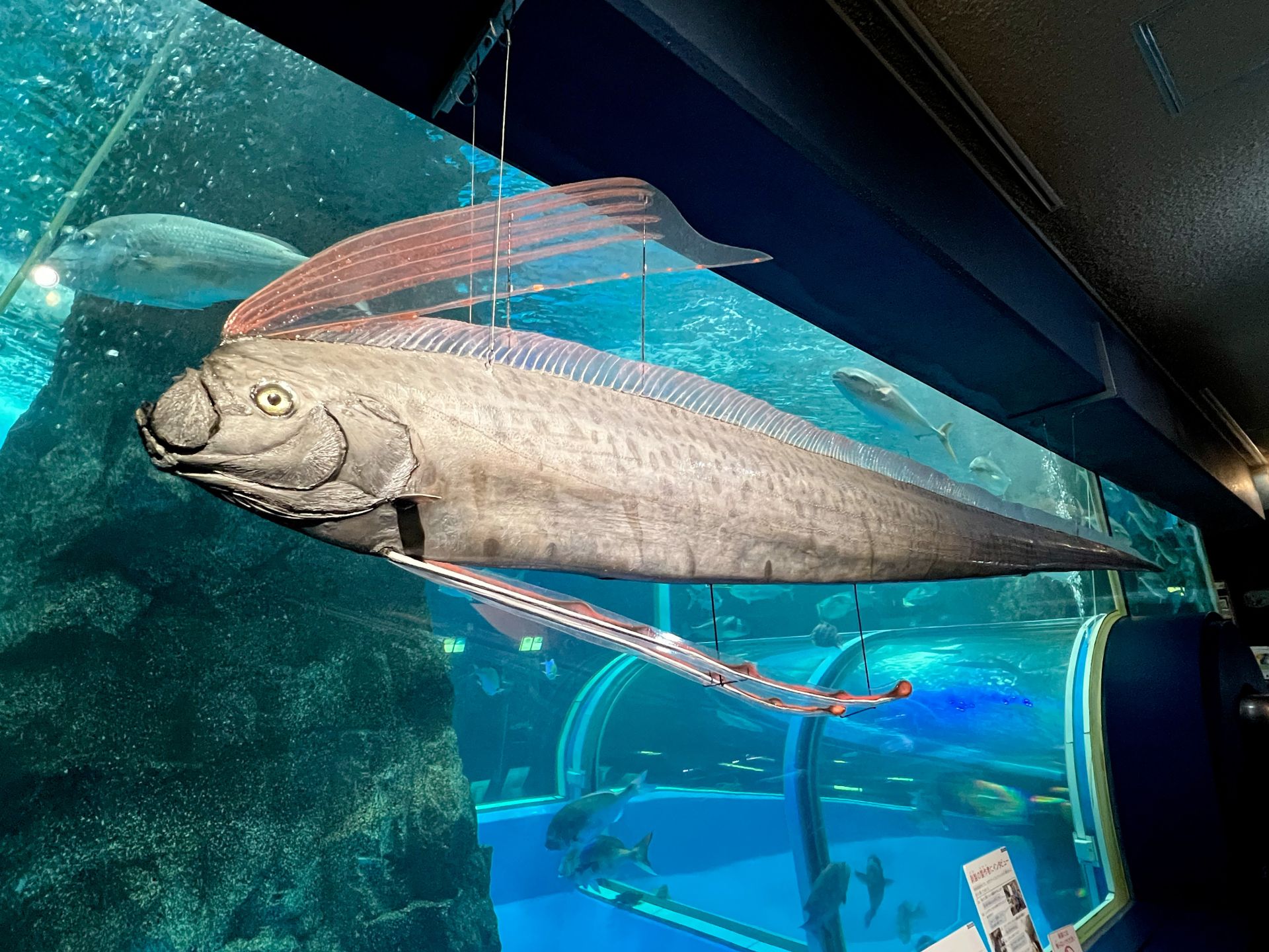 写真はリュウグウノツカイの剥製です。(非常に長く、斜めから撮ったら短くなっちゃいました!全長441.7㎝だそうです!)