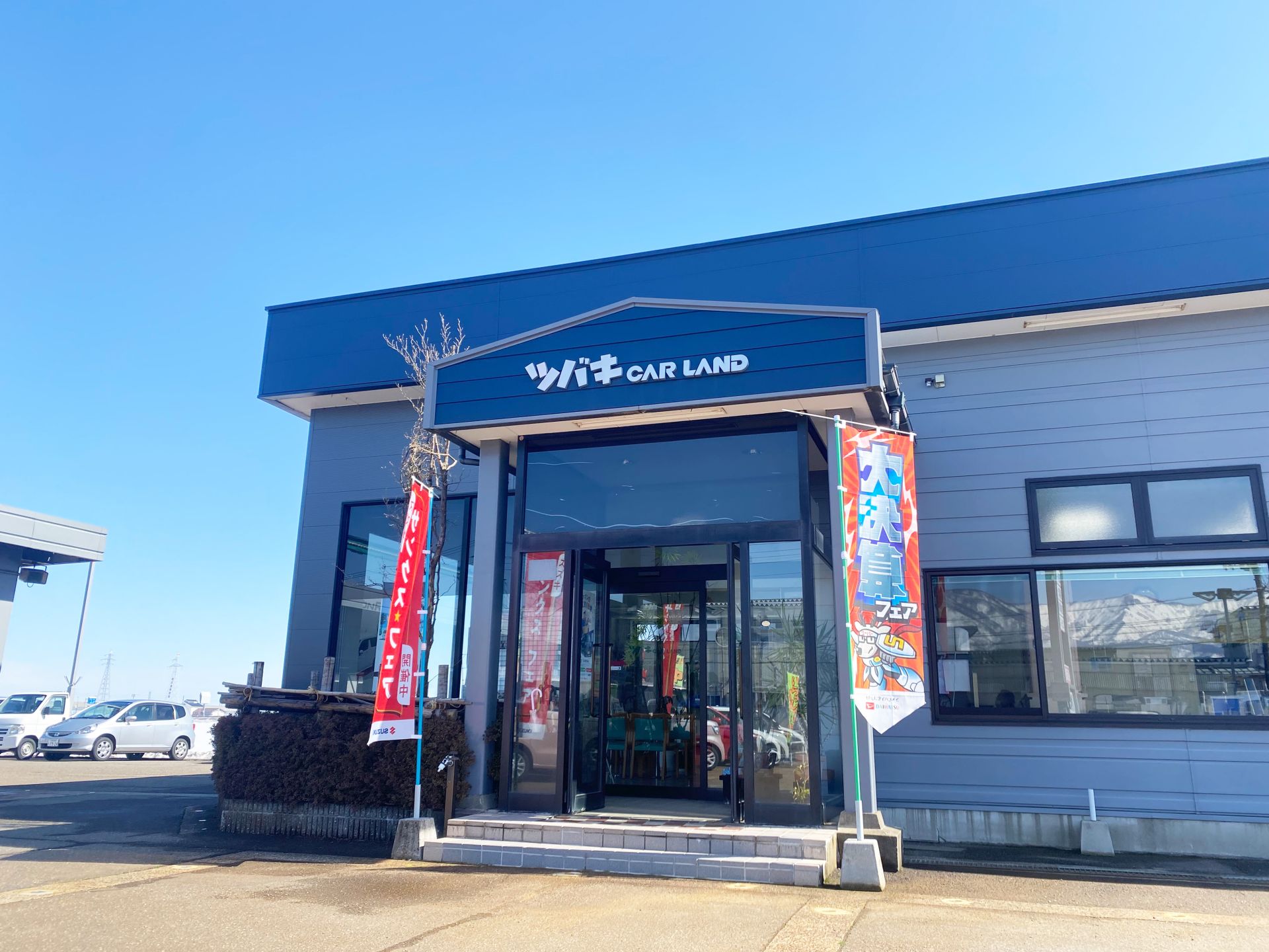 さらに広い地域の方にサービスを提供したいと思い、上越市寺町交差点近くに販売とピット作業を行う「ツバキカーランド」を構えています。