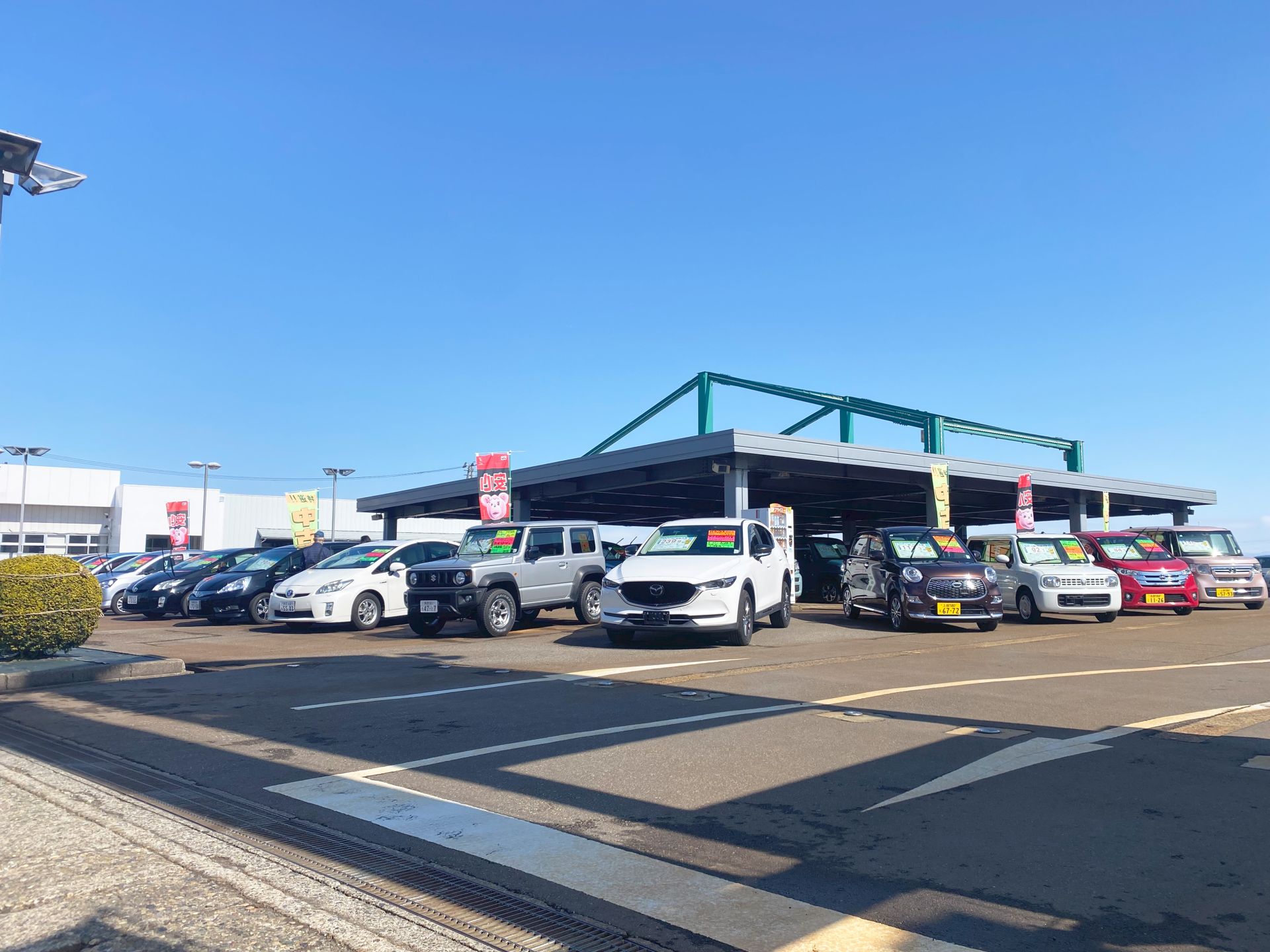 敷地内には屋根付き展示場を備えた中古車センターをはじめ、板金・塗装館、洗車場などの施設を備え、車の販売から点検、修理、車検、アフターサービスまで、安心してすべてをおまかせいただける体制を整えております。