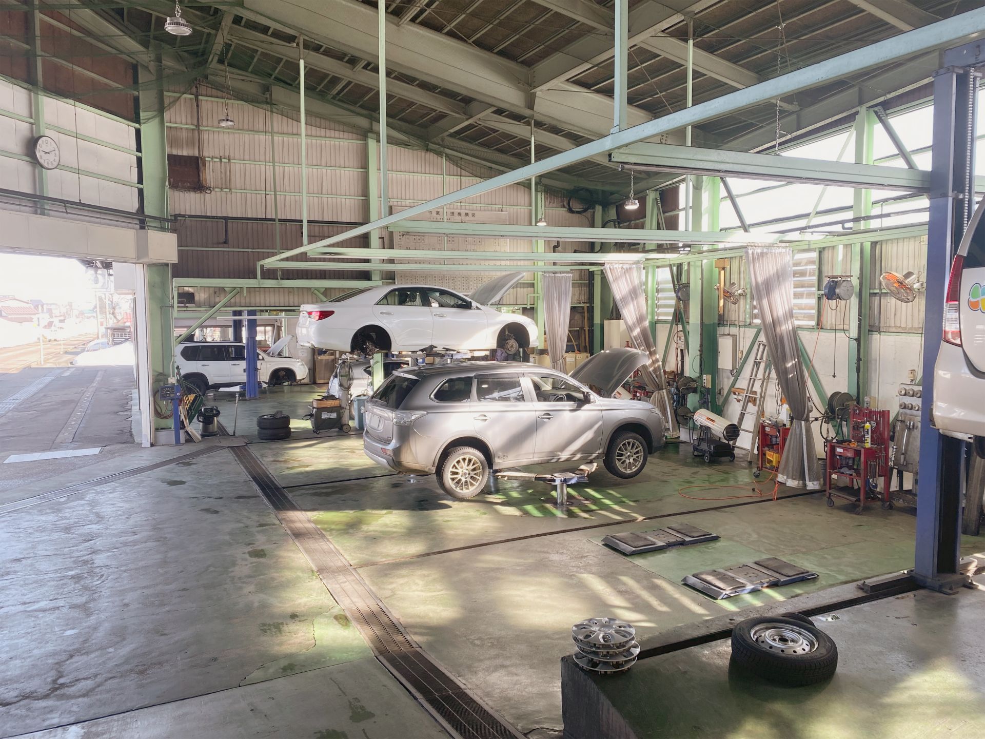 当社では、最新の機器を車検検査ラインに導入し、スピーディーな車検の実施を可能にしています。